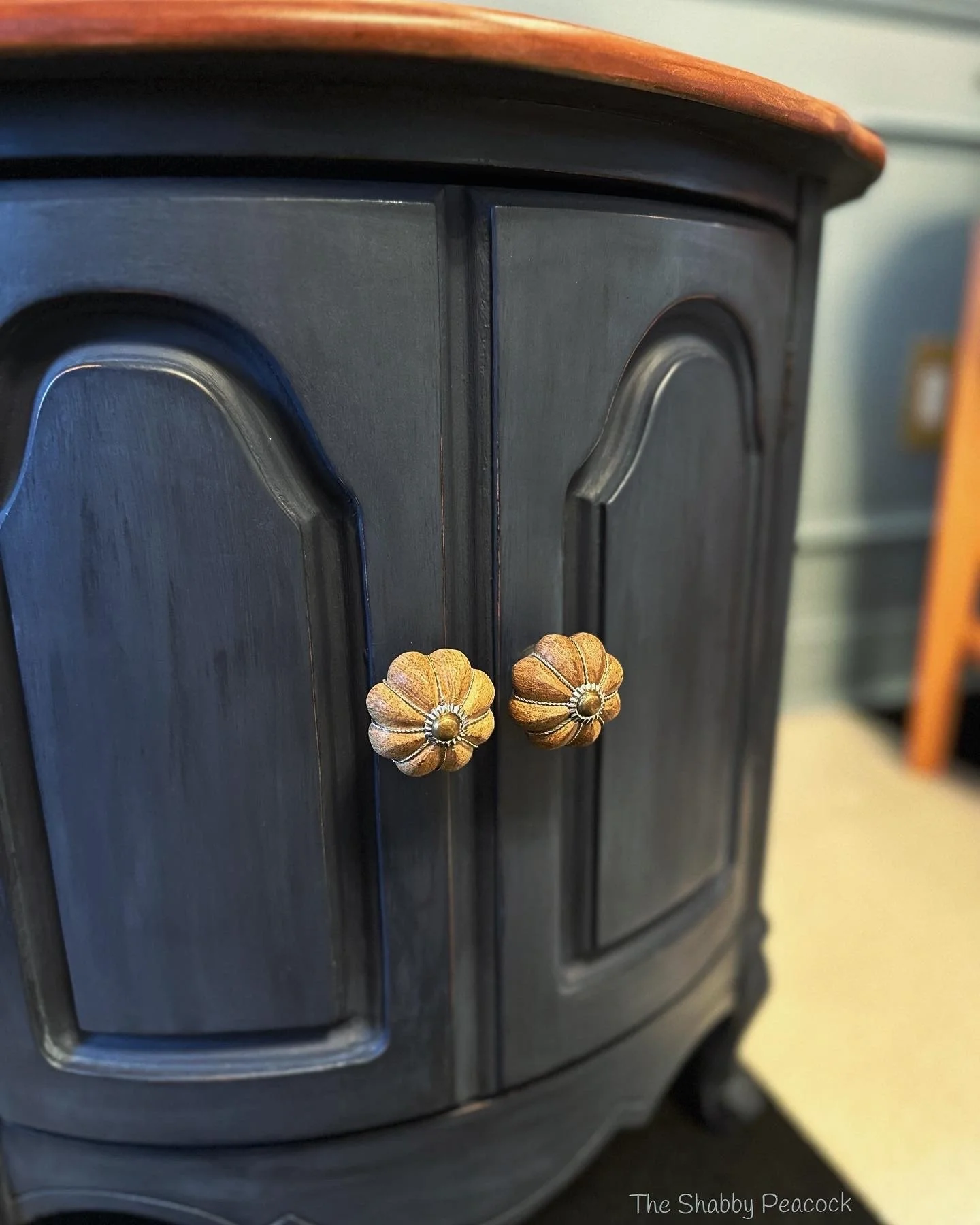 The Sandra table is also a very functional piece that could serve many purposes. She’s got ample storage underneath and would make a great nightstand or end table in any room. This piece was painted in Annie Sloan chalk paint in the color Oxford Navy.